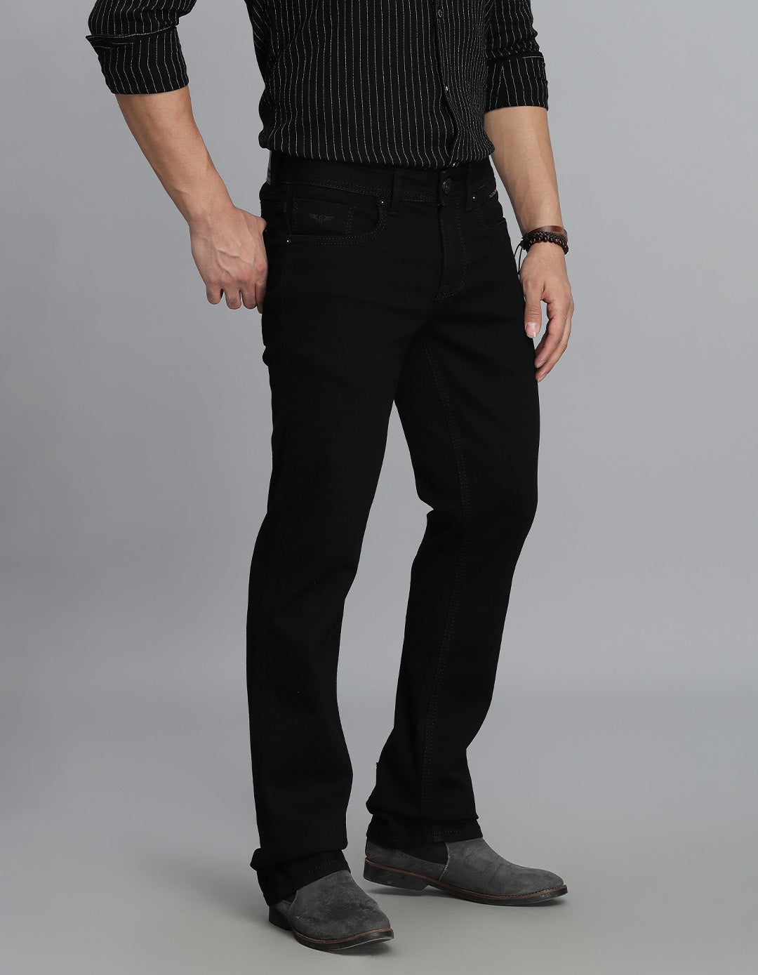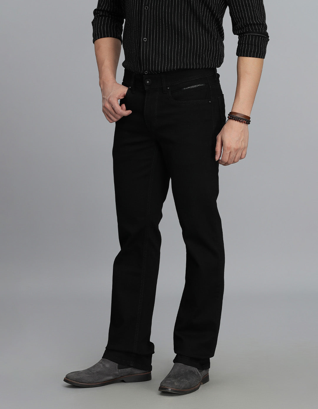 Black 5 Pocket Mid Rise Loose Boot Leg Jeans