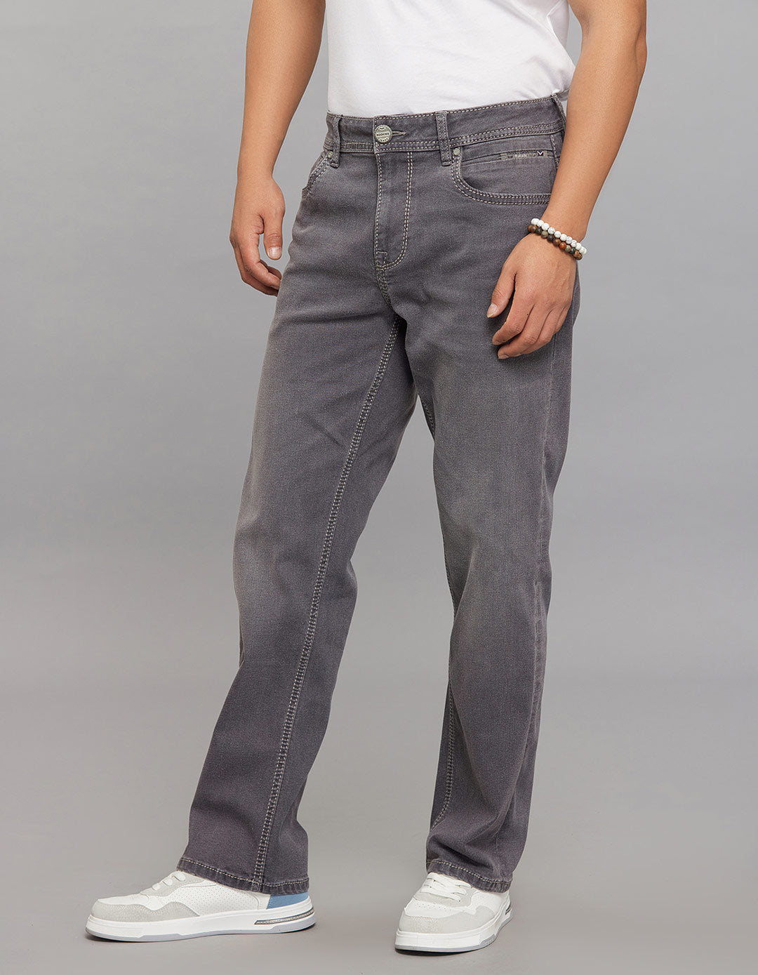 Grey 5 Pocket Midrise, Comfort And Straight Crop Length Stretch Jeans