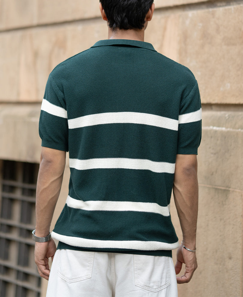 This zipper tee reinvents retro. With pine green stripes and a snug zip neckline, it’s giving sporty, smart, and street - all in one clean fit.
